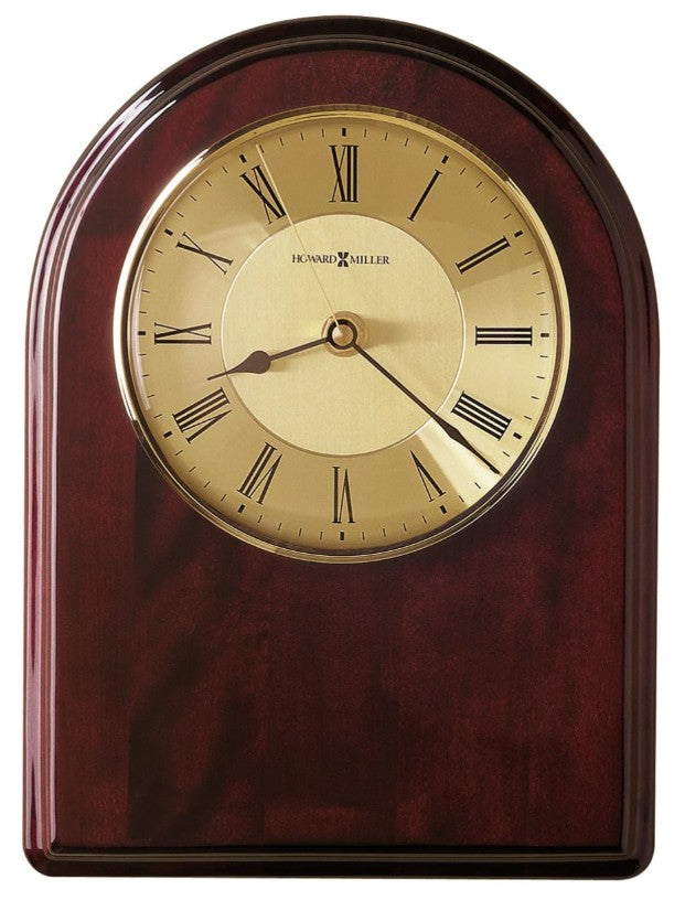 PLAQUE CLOCK: This Honor Time III Rosewood Hall Plaque is high-gloss on a large arch board and select hardwoods and veneers to complement your home decor. The clock’s movement makes a soft ticking noise without the use of chimes for a quieter environment.